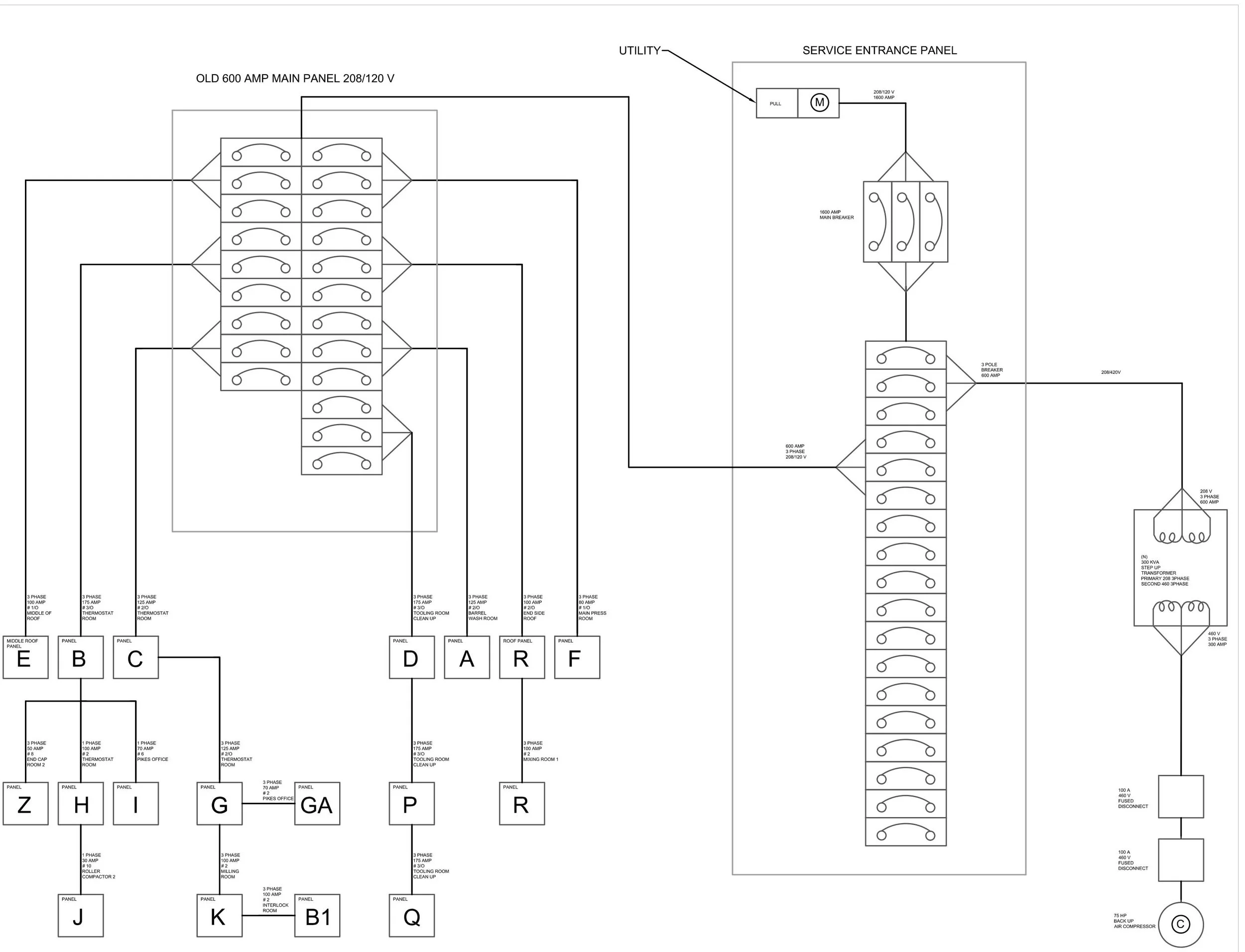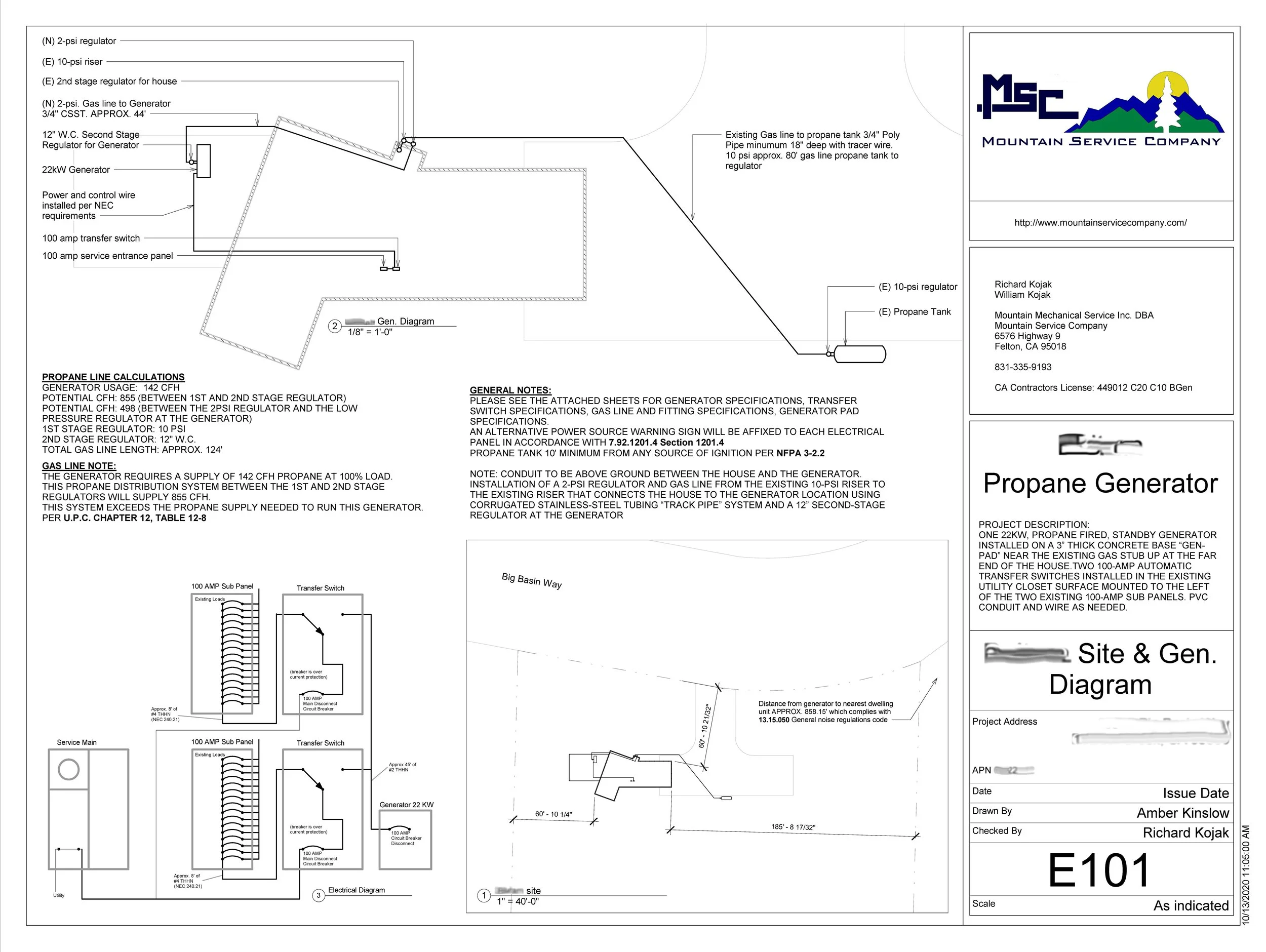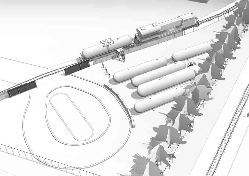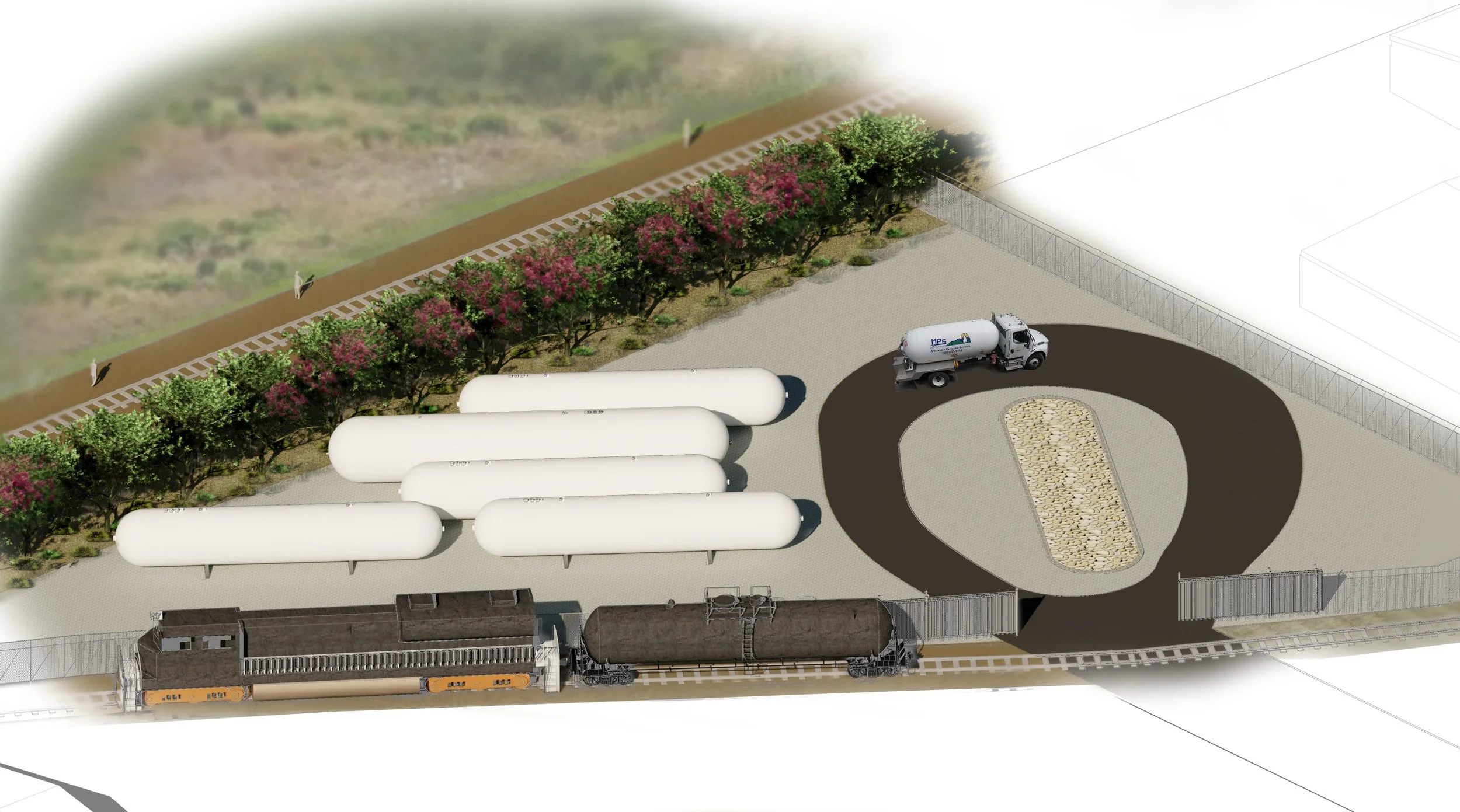 Plan, Elevations, and Sections of large 50,000 gallon propane tank